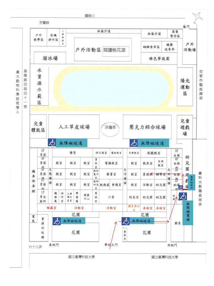 進入教學與行政大樓後,右側直走到底,有無障礙電梯,搭乘電梯即可直達三樓資源班教室,路線圖詳如附件。