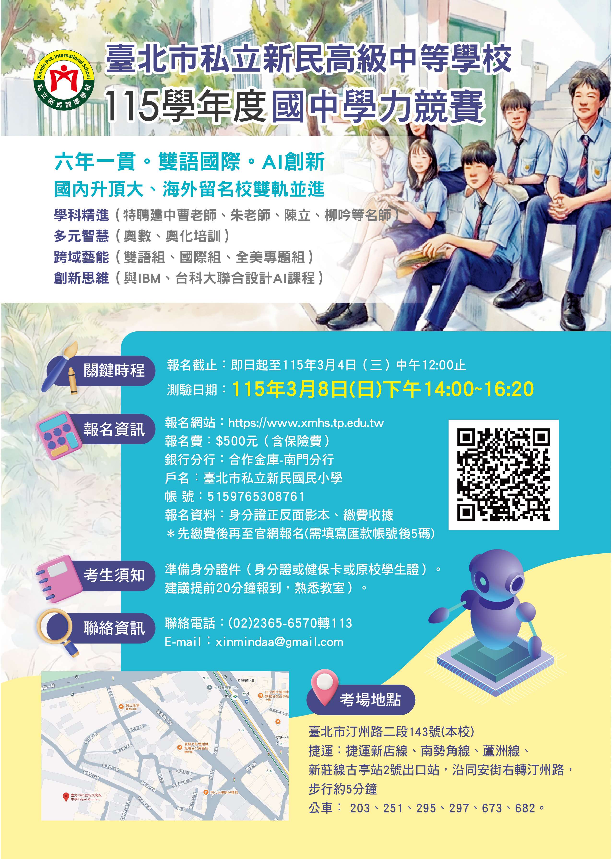 四、競賽日期:115年3月8日(星期日)下午14:00~16:20。