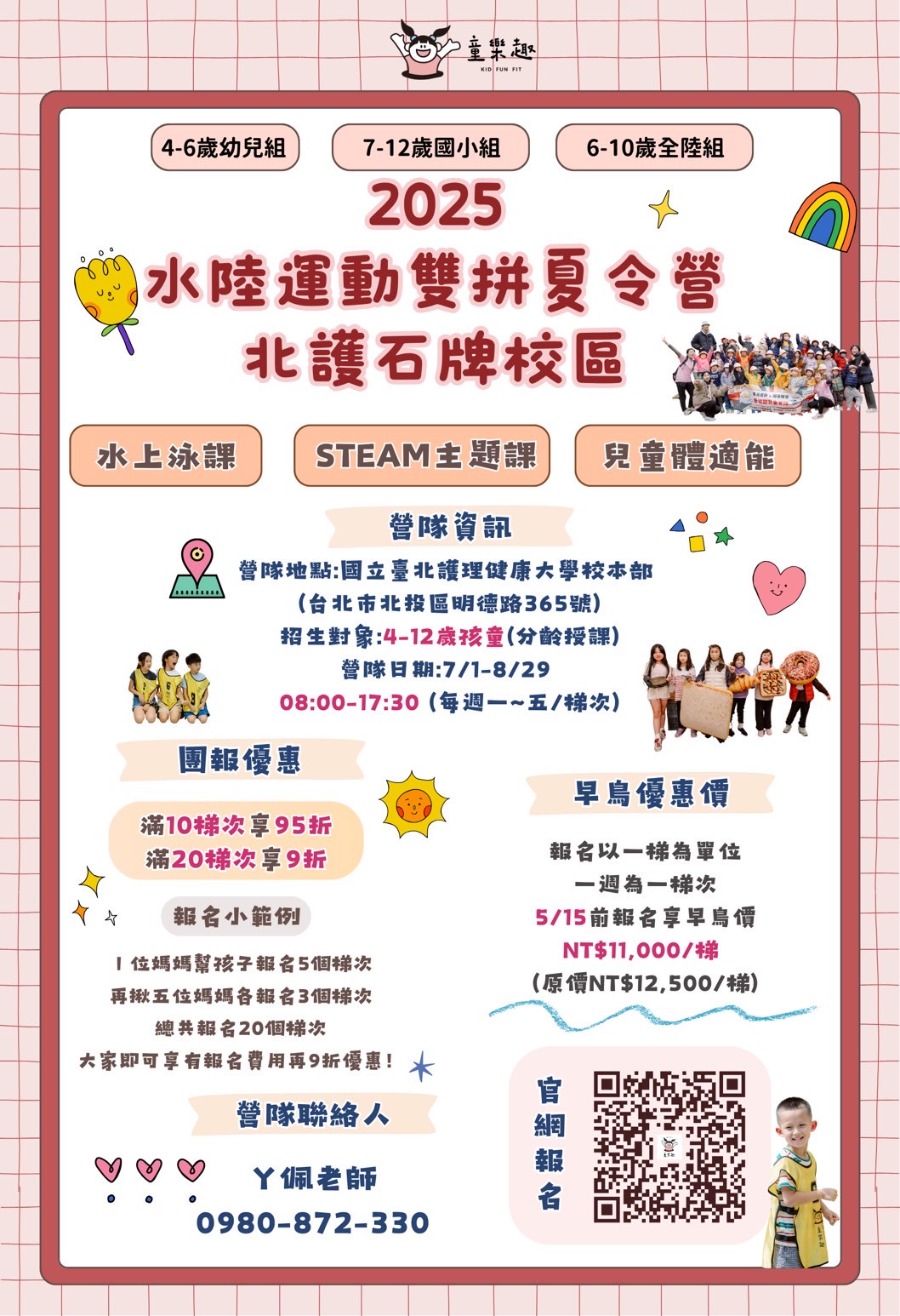 一、本校推廣教育中心與童博健康管理工作室合作開辦「2025水陸運動夏令營」即日起受理報名。