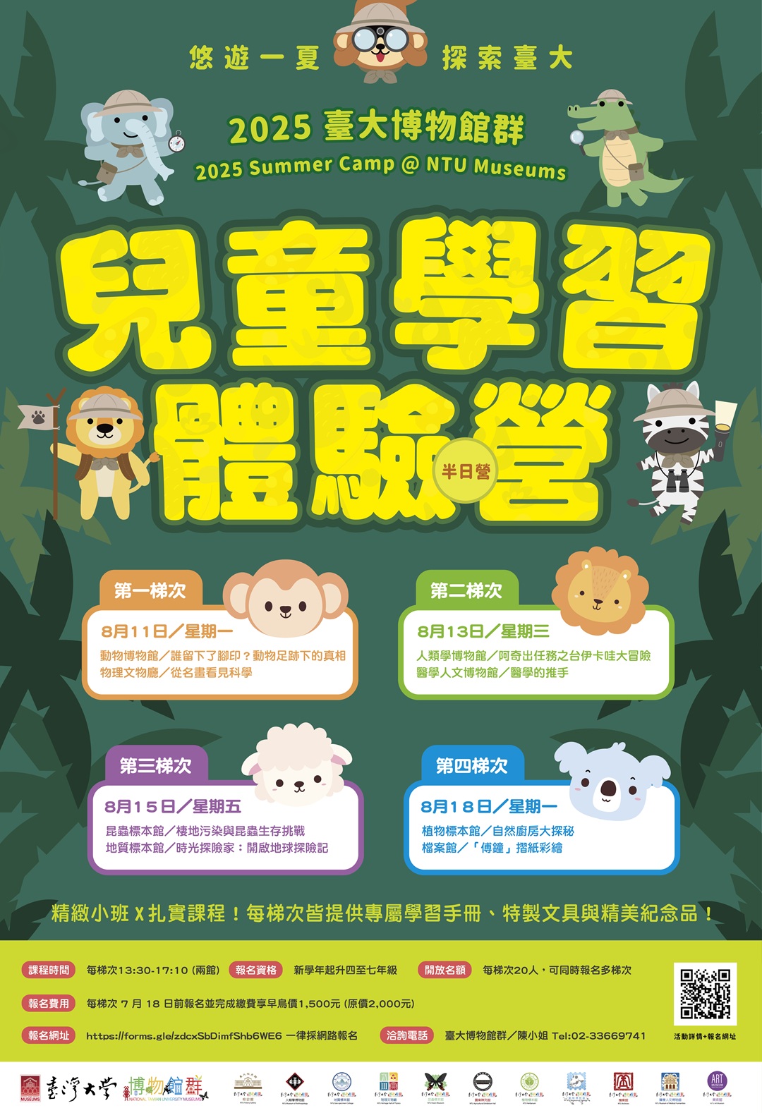 二、「悠遊一夏 探索臺大:2025臺大博物館群兒童學習體驗 營」相關資訊如下: