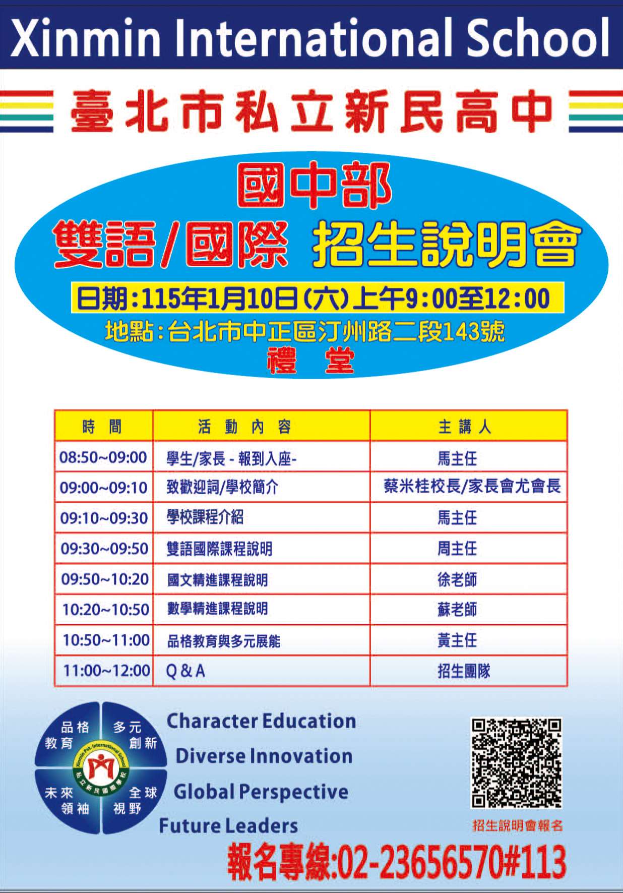 一、本校為協助家長了解本校的教學理念、課程規劃與設計及升學輔導,我們特別舉辦「國中部學校簡介暨課程說明 會」。